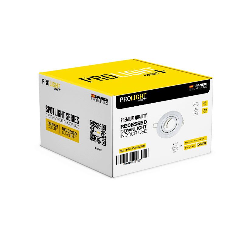 Resseced spot fitting in aluminum compatible with GU10 / 220V / 12V / IP20
