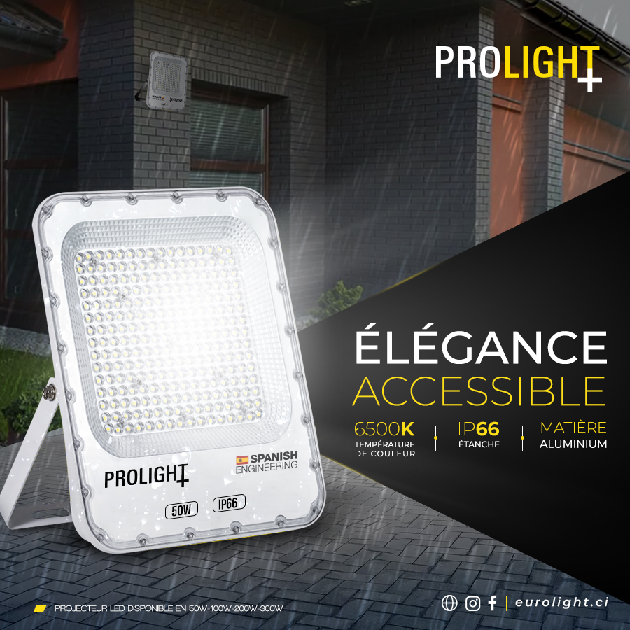 Projecteur Led Etanche Prolight+ en Aluminium, de puissance 50W, la température de couleur de 6500K, durée de vie jusqu'à 25.000hrs / IP66 / Voltage AC100-265V