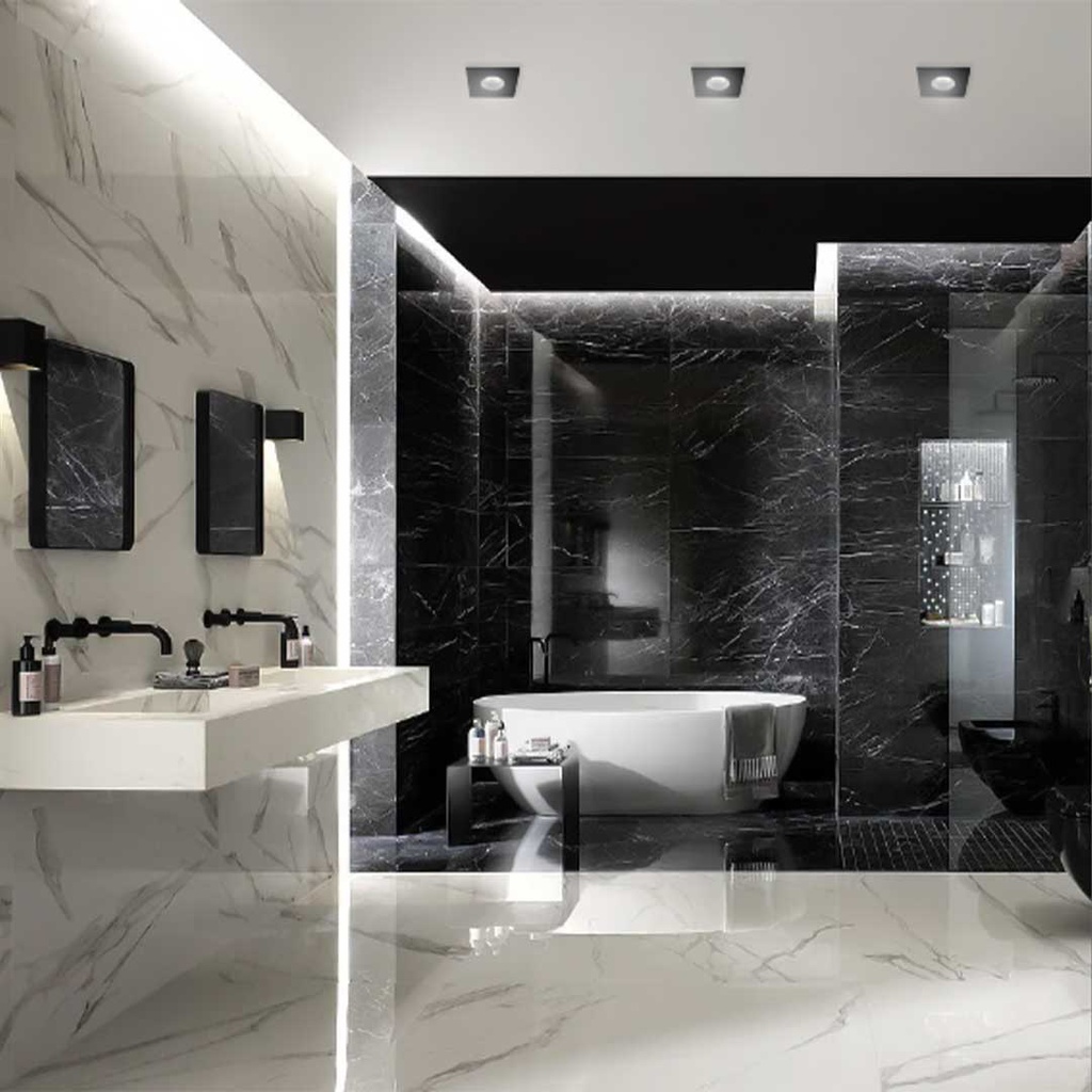 Couvercle Carré noir sable en pure aluminium pour Spot Encastré Etanche de dimension 84*84mm / coupe de 68mm / type de base GU5.3 / GU10
