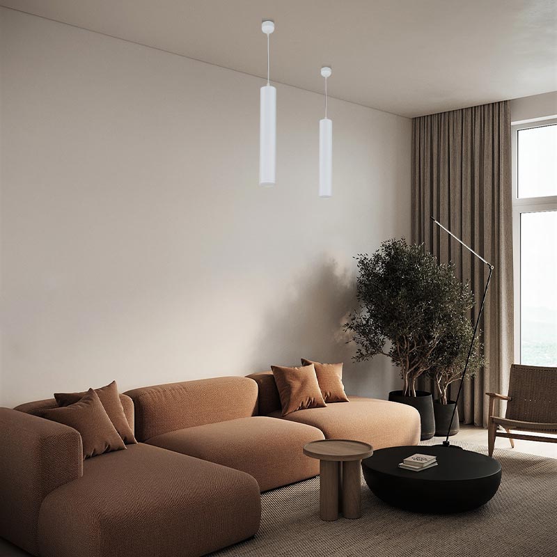 Luminaire LED Suspendu Blanc Sable en Aluminium, de diamètre φ60*H300 / surface de base φ65*H25mm / 1 mètre 2x0.75² fil tressé / type LED GU10