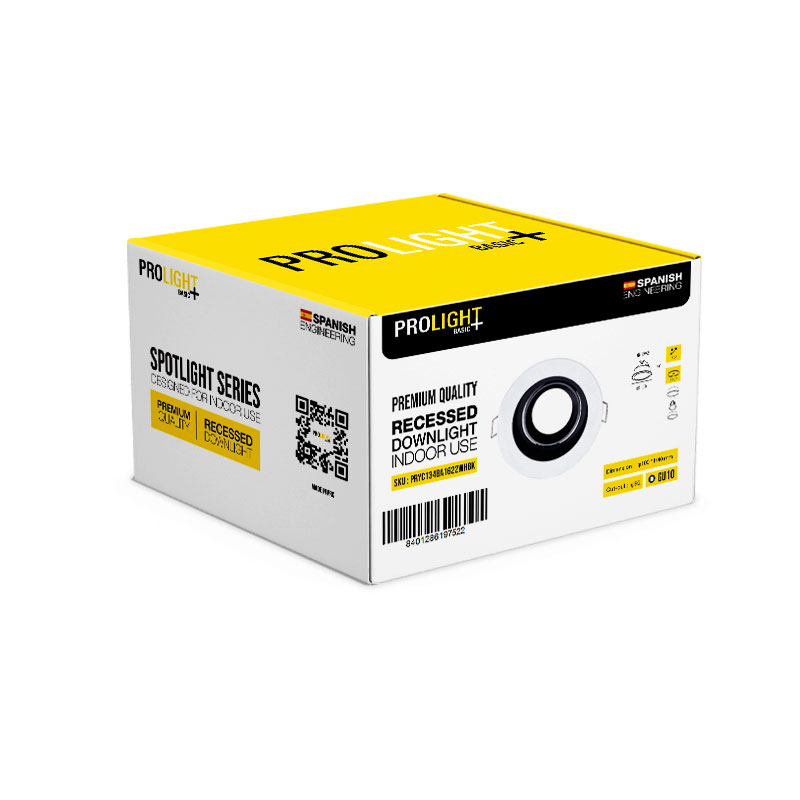 White and Black Ajustable Recessed spot holder PROLIGHT+ in aluminium for a GU10 lightbulb / 220V / 12V / IP20