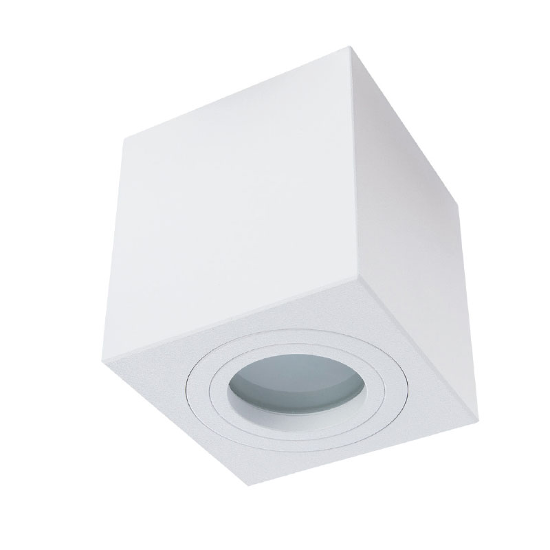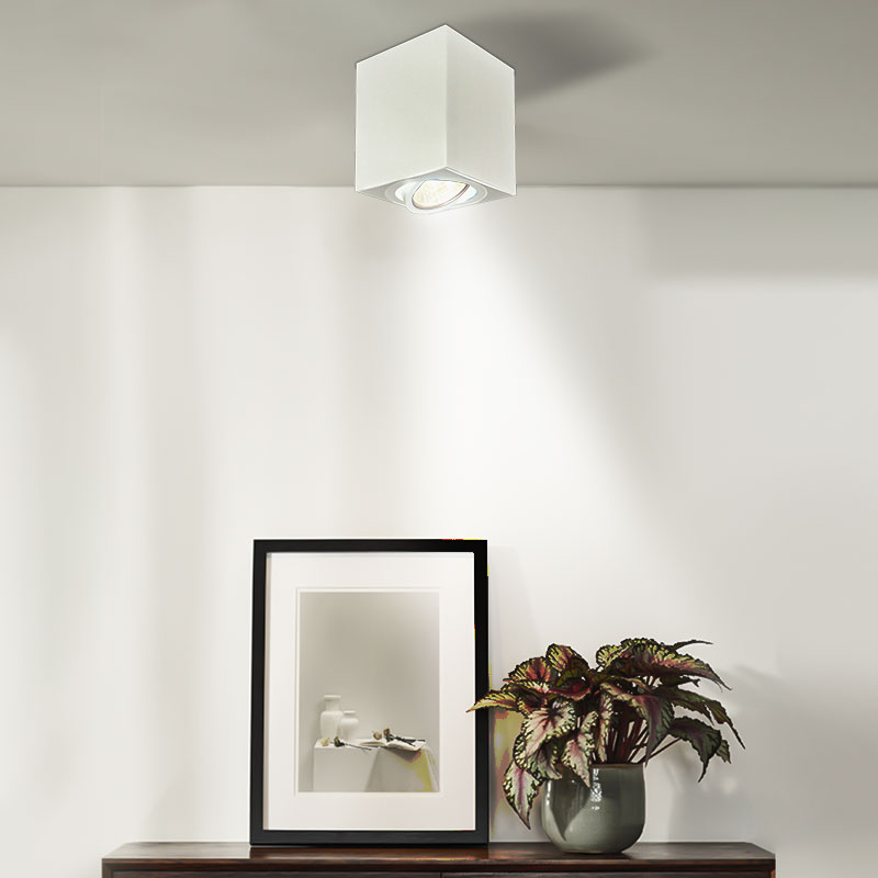 Support de spot blanc en saillie cube apparent orientable compatible avec ampoule LED GU10 ou MR16