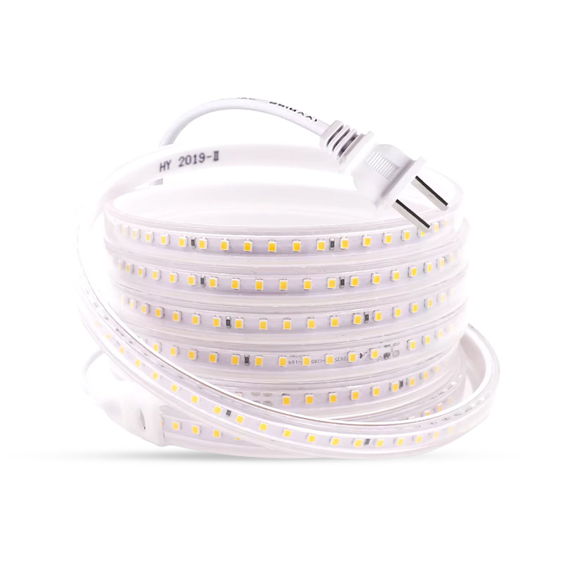 Ruban LED de type SMD 2835, voltage de 220V, puissance de 12.5W/M / indice de protection IP65 / coupe de 20cm/coupe / Température de couleur 2700K-3000K Blanc Chaud